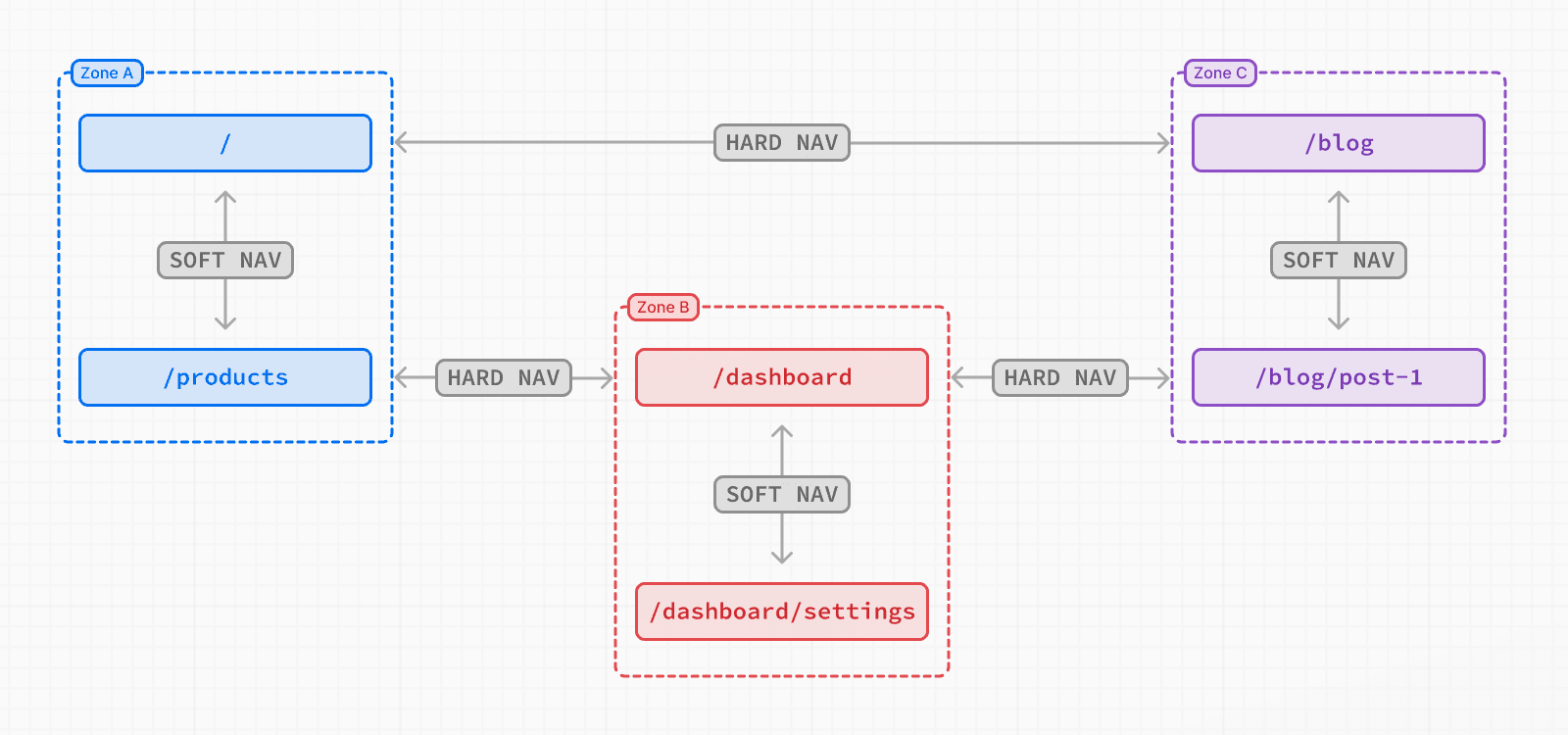 Vertical microfrontends are an architecture where multiple applications are served on one production domain, split into "zones". Each path for the domain is handled by one of the applications.